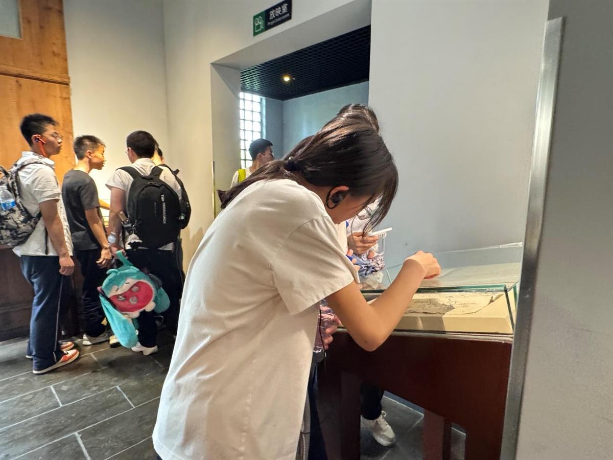 在“川军抗战馆”,同学们围在“川军出川”浮雕前聆听讲解:350万川军出川抗日,伤亡64万,王铭章师长在滕县战役中壮烈殉国……展柜里的“死字旗”、布满补丁的军装、士兵的家书,让川军“无川不成军”的英勇形象深入人心。