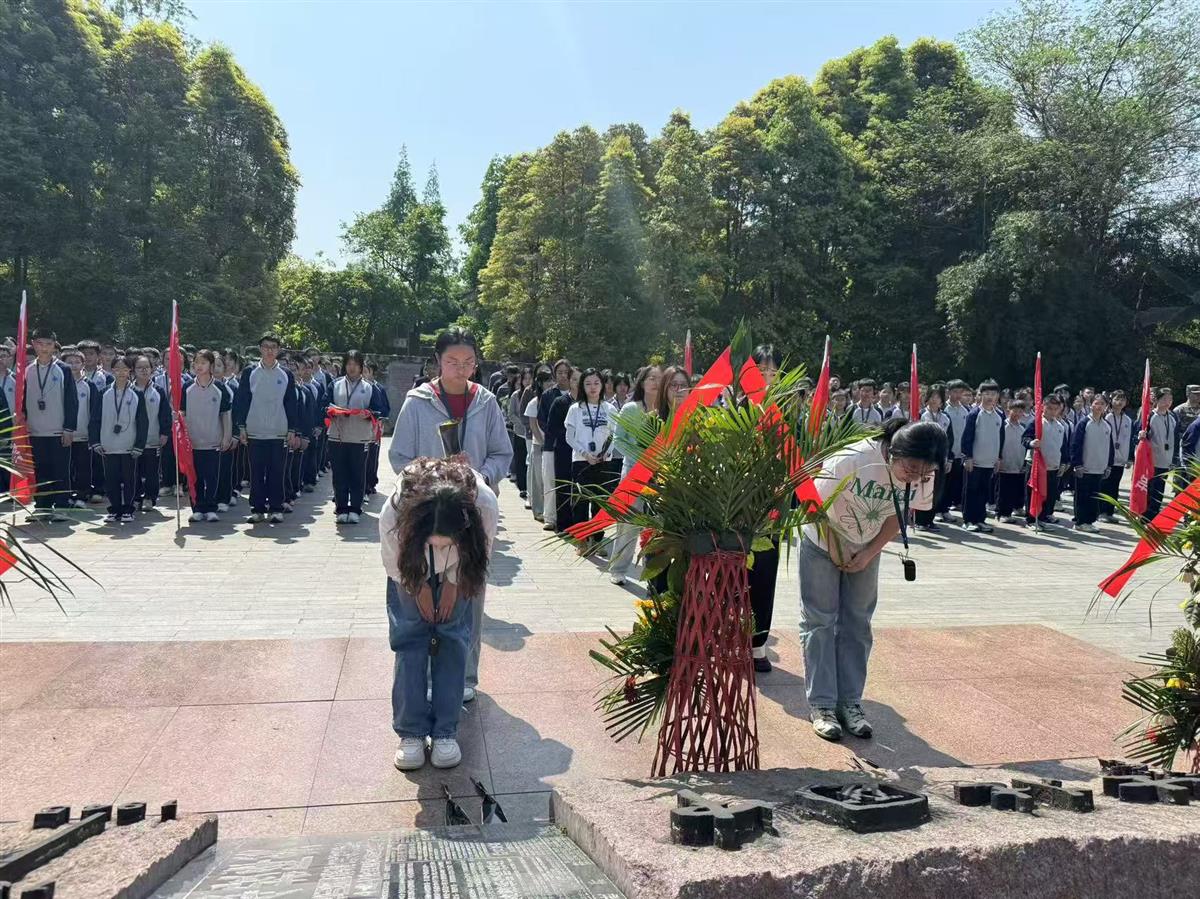 在英烈群雕广场上,在洪亮庄严的国歌声中,全体师生整齐列队,凝视英烈群雕,庄严宣誓。歌声响彻广场,誓言激荡人心。